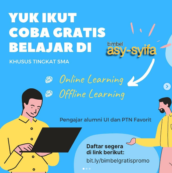 Yuk daftar coba gratis bimbel di Asy-Syifa. Buka link : bit.ly/bimbelgratispromo.